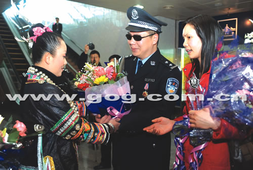 在當選第三屆“我最喜愛的十大人民警察”之后,昨日,天柱縣公安局指揮中心民警張秀昊載譽歸來,省委常委、公安廳長崔亞東等到機場迎接,在機場出口,崔亞東緊緊握住張秀昊的手,盛贊“你是貴州公安隊伍的驕傲”。