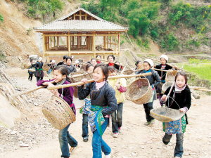 苗寨侗鄉的人們雖然生活比較清苦,但他們之間相處和睦,像個大家庭。