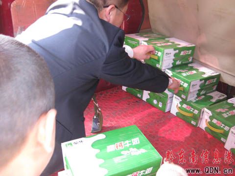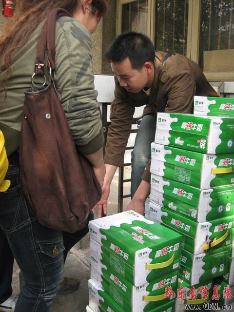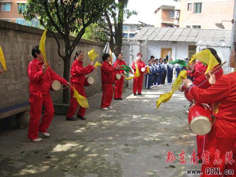 在一陣陣熱鬧非凡的腰鼓聲中,一件件傳遞關愛的牛奶送到了老人們的手中。