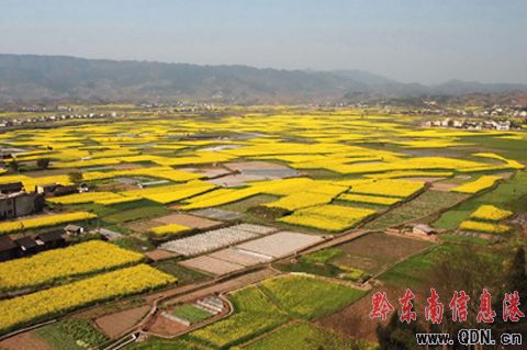 黃平縣舊州鎮萬畝大壩油菜花盛開,大地猶如披上了“黃金甲”,與民居交相輝映,構成一幅幅美麗的畫卷。舊州古城地勢平坦開闊,有一展無垠的萬畝大壩,大壩是貴州省著名的糧食產地。圖為記者3月15日在當地拍攝。