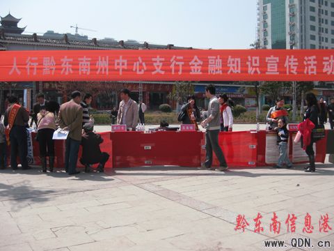 記者在凱里市大十字、萬博廣場等地看到,黔東南州煙草局、質(zhì)監(jiān)局、物價局、藥監(jiān)局、工商局、凱里市質(zhì)監(jiān)局、中國人民銀行凱里市分行等部門設(shè)立臨時工作處,向廣大市民進(jìn)行相關(guān)法律宣傳,識別假幣方法,發(fā)放常見摻雜、摻假、偽造、食品等簡易識別方法資料,并曝光部分假煙、假酒等假冒偽劣產(chǎn)品,深受廣大市民擁護。貴陽醫(yī)學(xué)院第二附屬醫(yī)院在大十字設(shè)立臨時工作站,給廣大市民測量血壓等義務(wù)健康體檢和咨詢活動。