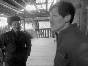 平毫小學25年不變的唯一一位老師楊永安(右)2月27日領著記者來到村民的家。