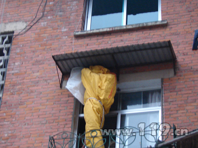 接到報警后,凱里市消防二中隊(duì)6名官兵攜帶防蜂服等防護(hù)器材乘坐1輛搶險救援消防車趕赴現(xiàn)場。到達(dá)學(xué)校家屬區(qū)后,經(jīng)觀察發(fā)現(xiàn),蜂窩直徑約有30厘米,隱藏在3樓雨篷的一個角落上,不時有馬蜂飛出巢穴,嚴(yán)重威脅著附近居民的人身安全,F(xiàn)場指揮員立即組織將周圍群眾疏散到安全區(qū)域,并通知附近的住家戶緊閉門窗,暫時不要外出。做好準(zhǔn)備工作之后,指揮員命令一名救援人員著防蜂服、系安全繩,爬上三樓群眾家安置在外面的鐵欄對蜂窩進(jìn)行摘取。20分鐘后的蜂窩被成功“鏟除”。