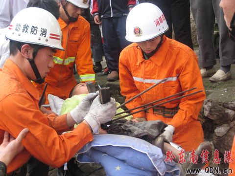 本港訊 (實習記者 楊驥)今日上午(09年4月11日),凱里市蓮花巷99號一8歲兒童玩耍時被板車鐵架刺穿小腿,經消防隊官兵及醫護人員積極救援,該兒童被及時送往醫院接受治療。