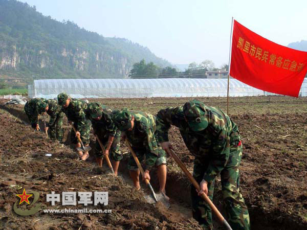 4月15日,貴州省凱里市人武部干部、職工和民兵應(yīng)急分隊隊員50余人組成春耕支農(nóng)突擊隊,到萬潮鎮(zhèn)勞動橋村參加大棚蔬菜種植義務(wù)勞動,幫助農(nóng)村發(fā)展農(nóng)業(yè)產(chǎn)業(yè)結(jié)構(gòu)調(diào)整,促進農(nóng)民增收。