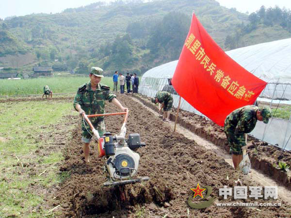 春耕時節(jié),這樣的迷彩身影在凱里田間地頭隨處可見。3月份以來,這個人武部針對農(nóng)民外出打工多,農(nóng)村勞力緊缺的實際,切實把農(nóng)業(yè)產(chǎn)業(yè)結(jié)構(gòu)調(diào)整當(dāng)作農(nóng)業(yè)增效、農(nóng)民增收的一項重要任務(wù)來完成,組織20支600余人的民兵助耕服務(wù)分隊,深入駐地村寨幫助孤寡老人、特困戶、軍烈屬開展春耕備耕幫扶活動。同時,還為農(nóng)民送去科技致富、農(nóng)作物病蟲害防疫等書籍。
