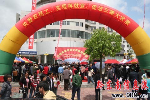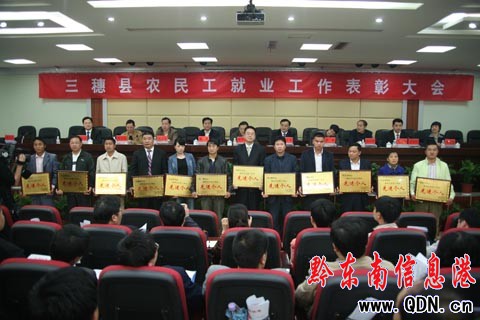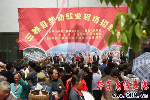 本港訊 (萬祖德 攝影報道)3月19日,三穗縣召開“農民工就業工作表彰大會”,表彰9個先進集體、14名優秀農民工。并承辦 “三穗縣勞動就業現場招聘會”,為該縣16000名返鄉農民工構筑就業大平臺。此次招聘會有19家企業參加現場招聘,招聘崗位職數1195個,近1000名農民工前來咨詢選擇適合自己的崗位,并現場與招聘方簽訂勞動合同。