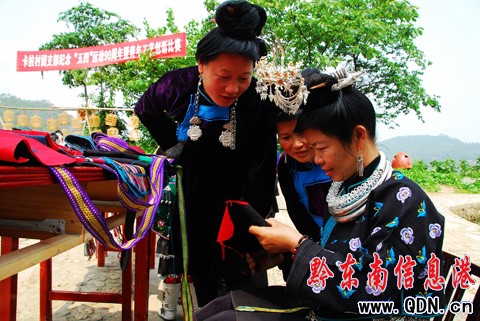 本港訊 (黃曉海 攝影報(bào)道)2009年5月4日,貴州省丹寨縣龍泉鎮(zhèn)卡拉村的苗族青年團(tuán)員們舉辦“編織工藝創(chuàng)新比賽”慶祝“五·四”青年節(jié)。