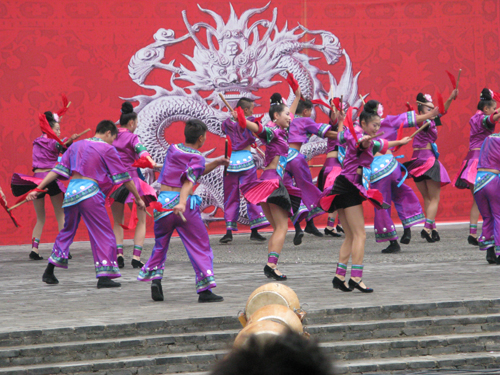 在龍圖騰下起舞的苗家男女
