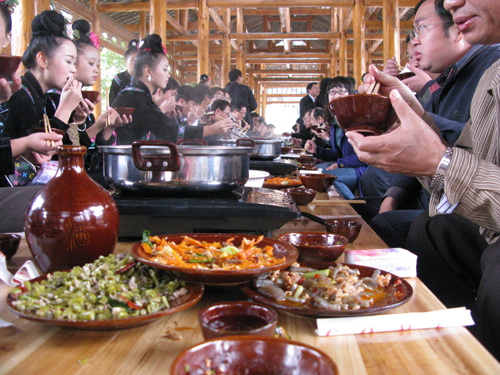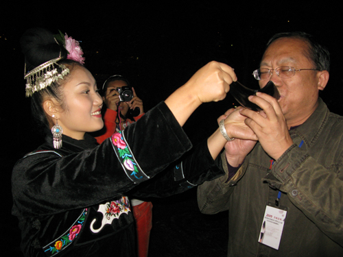 10月17日,參加“2009年名響貴州·旅游精品線路設計暨美文大賽多彩貴州行”各路網絡媒體的記者終于領略到了苗族兄弟姐妹的熱情好客,苗族人民的璀璨的民族文化給各路記者留下了極為深刻的印象。記者們游覽了西江千戶苗寨,住吊腳樓,品攔路酒,嘗長桌宴,觀賞了苗族兄弟姐妹的文藝表演,濃郁的民族風情深深的吸引了各路記者。