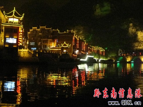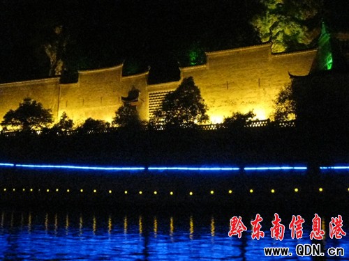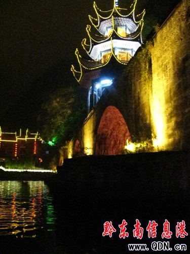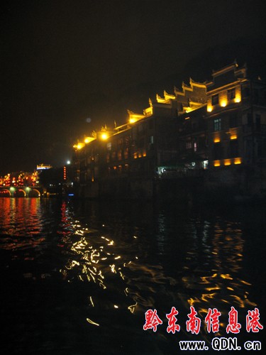 夜晚在鎮遠城游潕陽河是另外一種情調,潕陽河在夜晚變的華麗嬌媚,燈光映襯下的舞水,變幻著炫麗的色彩,河水流出夢幻般的旋律,仿佛與愛人徜徉在夜西湖一般,心情迷幻起來。舞水兩岸,是一排排徽派建筑,高高的碼頭墻是江南熟悉的身影,河水蕩漾閃爍著倒影,仿佛剎時回到了夢幻般的江南水鄉,今夜我一定會夢見回家了。
