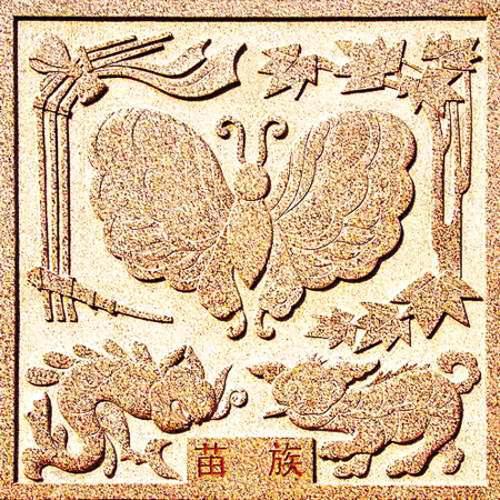 苗族人能歌善舞,奉行自然崇拜和祖先崇拜。苗族族徽形象設計簡潔大方,寓意深刻,與刺繡完美結合,別具匠心。其族徽中心主體圖案為蝴蝶,兩側為苗族神話里的楓木圖騰和苗族人最喜愛的古樂器蘆笙。苗族服飾文化一枝獨秀,而與服飾有關的刺繡、蠟染、手飾制作等工藝更是絢麗多彩。黔東南地區(qū)的苗族,通常把蝴蝶視為人的始祖,稱其“蝴蝶媽媽”。在苗族的傳說中,蝴蝶媽媽生于古楓樹的樹心,后來和水上的泡沫戀愛懷孕生下了12個蛋,并于12年后,生出了姜央、雷公、龍、虎、蛇、象、牛等12個兄弟。苗族人視姜央為遠祖,供奉“蝴蝶”就可保佑村寨安寧,子孫繁衍,五谷豐登。在今天黔東南的部分地區(qū),還有“掃寨”習俗,祭祀的就是“蝴蝶媽媽”。因“蝴蝶媽媽”生于楓木之中,所以楓木也是苗族文化中很重要的圖騰造型。
