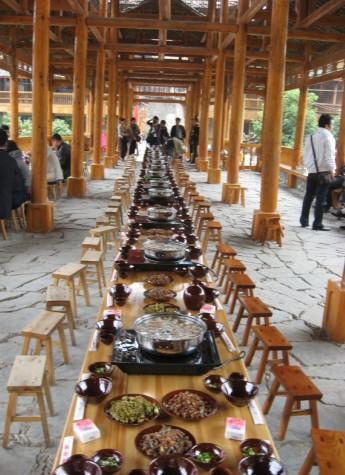 苗寨以青石板路串連,楓樹成林,楓香撲鼻。西江位于貴州凱里市的東南,從雷山路口折向東北,是凱里周圍規(guī)模最大的苗寨,約有1440(官方統(tǒng)計)多戶人家,所以稱為“千戶苗寨”。這里的房屋大多是木吊腳樓,都是用杉木搭成,依山勢向兩邊展開,古香古色的板壁在夕陽照射下一片金黃,吸引了很多中外游客來這里參觀。