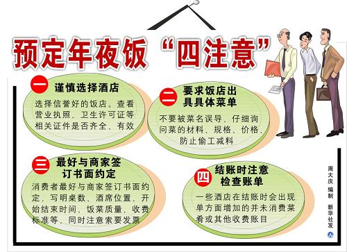| 2009年1月22日,圖表:預定年夜飯“四注意” 新華社 發 |