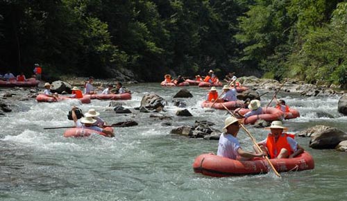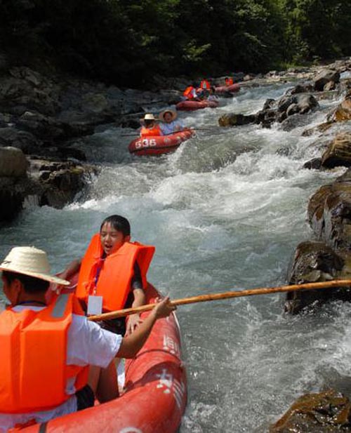 翁密河漂流是臺江縣剛推出的又一極富魅力的項目。它位于雷公山北麓,地處臺江縣南宮森林公園內(nèi),距縣城28公里,整個翁密河流域被原始森林覆蓋,河水清澈見底,起漂點是優(yōu)美的交密村古苗寨,終點是南宮鄉(xiāng)政府所在地,翁密河河水水質(zhì)潔凈,急流之處落差不大,有驚無險,是漂流的良好寶地。漂流河段全長約8公里,漂流時間約2小時。