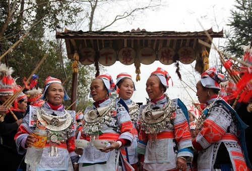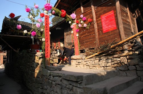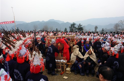 楓香寨,亻革家語稱“變董”,意譯為“銅坡”,即“有銅的山坡”。楓香寨位于黃平縣城東南30公里處的重興鄉東北側,距重安江10公里,有公路直達。 革家人都靠種地為生,因這個群體人口少,服飾別致,風俗習慣獨特而著稱,它就是革家人。革家聚族而居,多為一姓一寨。有廖、羅、李、王、楊、蘭、吳、高等20個姓氏,楓香寨廖氏家族就是其中較為顯著的一支。由于地處偏遠,人數眾多,這里的革家風情自然也就最為濃厚。尤其是這里的蠟染、刺繡圖案,內容意味深長,可以通過它來了解革家的文化與歷史。
