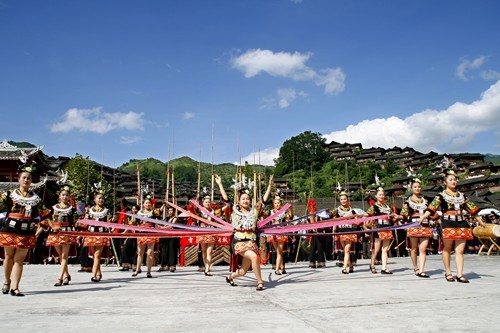 世界上的苗族人數中國最多,世界上的苗寨西江最大。西江苗寨位于雷山縣東北部,背靠雷公坪,面臨白水河,山環水繞,怡靜清幽,距省城貴陽227公里,距黔東南苗族侗族自治州首府凱里34公里,距雷山縣城36公里。西江苗寨由平寨、東引、也通、羊排、副提、南貴、也薅、烏嗄、烏仰、兩岔河、皆王、掌卡等12個自然村寨組成,現有1251戶4758人,其中,苗族人口占總人口的99.5%,因此被稱之為“千戶苗寨”。全寨有李、宋、楊、蔣、陳、唐、龍、毛、王、陸、梁、董、顧、吳等姓氏。
