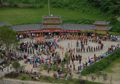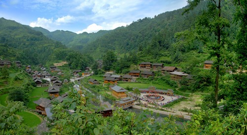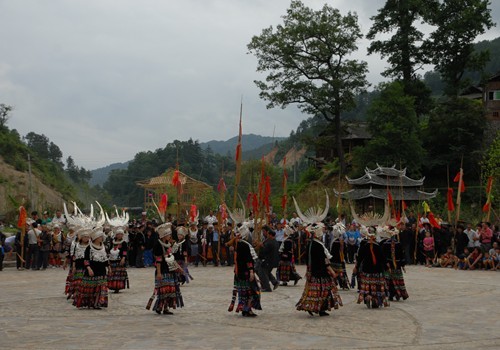 交宮村位于臺江縣南宮鄉東部,轄4個村民小組兩個自然寨,距鄉政府駐地15公里,距紅陽旅游景區8公里,距縣城29公里。一條清澈見底的溪流常年不竭從村中潺潺流過,使交宮村顯得生機盎然、靈氣十足。交宮俗稱久貢,相傳是江西移民,隱居深山逃避戰亂。移民至此,清代末年曾經繁華昌盛,當時總戶數700多戶,近3000人,后因人多地少,一方水土養不活一方人,民不聊生,導致民國時期戶數不足30戶。1966年,革東鎮五河村18戶苗族(水苗)遷徙到這里與交宮苗族(深山苗)人民共同生活,和諧相處,繁衍生息,沿襲至今。