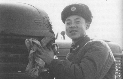 雷鋒在精心保養汽車