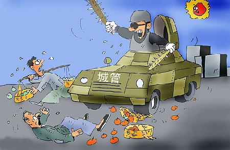 我們一次次地看到城管們開會、抱團,充分地運用著自己的話語權,訴說著自己的委屈。可是至今,卻還沒看到過流動商販有自己的組織,并且能騰出時間,來相互傾訴一下他們的苦衷,表達一下自己的訴求。也許,他們沒有時間矯情吧,他們只知道,城管來了之后,撒腿就跑,來不及跑,就設法把自己的那點家當看好,盡可能不讓城管給沒收了,或者給砸了,踢了。要知道,那一點水果、一摞襪子、幾把雨傘,和那輛破舊的三輪車,就是他們的飯碗啊。少一次擺賣,就可能少一頓飯錢,孩子的學費就可能沒有著落,老娘的藥費就可能無法湊齊——誰讓自己沒有工作呢!誰讓自己沒有本事、沒有本錢呢!當公務員多好,風不吹,日不曬,雨不淋,冬天有暖氣,夏天有空調,一張報紙一杯茶,朝九晚五,旱澇保收,不愁吃不愁喝,還有住房公積金,退休了還有錢拿,多好。哪里像小商販那樣,被城管追得滿世界亂跑,至于和城管的摩擦、糾紛、沖突有多少次,那簡直是家常便飯了,誰顧得上統計呢?統計了,又有什么意義?不過不要緊。城管們會有自己的統計。他們說——廣州每年被打的城管達200人,而在暴力抗法中受傷的商販只有2到3人。呵呵,要是大灰狼哭著說小白兔欺負了他,你會說什么呢?