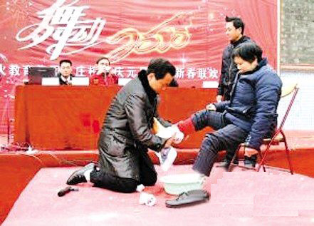 重慶豐都縣一名校長在家長會上當(dāng)著1200名師生和家長給母親跪下洗腳,伴著《母親》的旋律,一邊洗一邊教育學(xué)生父母操勞之不易。有人認(rèn)為,該校長純屬作秀;有人覺得,校長為人師表,以身示范教育學(xué)生孝敬父母,學(xué)會感恩,值得稱道。這位校長則稱當(dāng)代學(xué)生“感恩的心太淡薄”。(《重慶晚報》 1月19日)