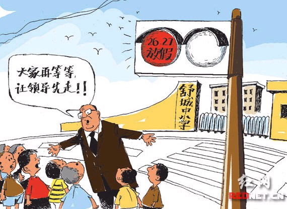安徽六安市舒城縣城區的多所中小學乃至幼兒園的上萬名學生在4月26、27日兩天放假。放假的原因僅僅是這兩天縣城召開了一個“重要會議”。昨日,舒城縣政府副縣長余靖向記者表示,給學生“調課”是為了避免開會期間出現交通擁堵。(4月29日《新安晚報》)