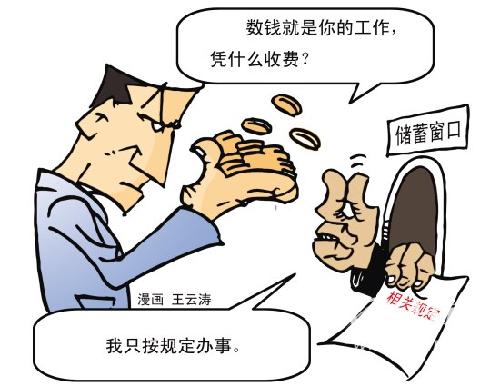 哥收的不是錢,是窮人的血汗。除了小女孩,收破爛的,要飯的,乞討的會有這些零錢零幣,那么,這些乞丐們都逃不脫同樣被揩油的命運。富翁們不會被揩油,因為他們的錢大款大架子大,銀行巴不得將富豪當明星待。富豪來了,一概貴賓室伺候,乞丐來了,一概拿膠帶伺候,并且還要在小女孩和乞丐們將錢自己捆綁好之后,靜等再拿出四分之一的手續費來。