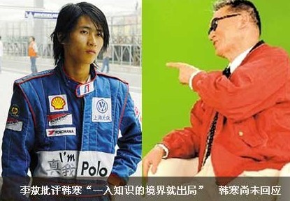 陳文茜批評韓寒對世博“無知”,李戡說韓寒“大學都考不上”,李敖說韓寒超越了寫小說、賽車的“本位”,一定會“很痛苦”。這些話背后共有的,是“知識精英”的傲慢。