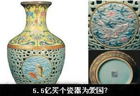 《金融時報》記者史堤夫文森則撰文稱,天價花瓶背后是中國人的“瓷器愛國主義”。文章稱,如今中國的一些富人們,正帶著愛國主義情節,急切地想買回本國文化遺產。乾隆瓷瓶就是最近的例子。文章還援引英國一名藝術品專家的話稱,“回顧上世紀中國,你就能明白為何中國人如此熱衷于重建他們的歷史。收回這些文物,有助于他們重尋身份和文化。”