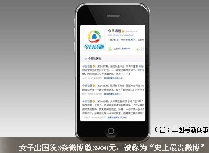 國外發3條微博收3900元 聯通稱計費沒問題