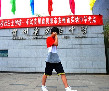 遲到被拒考場外的貴州考生