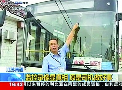 看到一名年邁的老人倒地受傷,他將車停穩(wěn)后,下車將老人扶起。這對南通汽運集團飛鶴快客公司駕駛員殷紅彬來說,不過是一次普通的善意之舉。而這樣的好事卻一度讓他很郁悶,因為將老太扶起后,自己竟被人誤認為是肇事者,還驚動了公安。好在車內(nèi)有監(jiān)控錄像,將他整個救人過程記錄了下來,還了自己清白。事情經(jīng)中央電視臺披露后引起廣泛關(guān)注,真相大白后的老人全家倍感內(nèi)疚。昨天,還躺在床上養(yǎng)傷的老太不僅對自己的一時糊涂深表歉意,還讓兒子專程向助人為樂的司機和乘務(wù)員送來錦旗致謝。據(jù)悉,如皋市有關(guān)方面已為殷紅彬申報南通市“見義勇為好司機”。