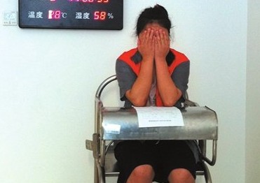 嫌疑人小麗面對(duì)提問(wèn)不時(shí)雙手掩面,然后長(zhǎng)嘆一口氣。穆奕攝