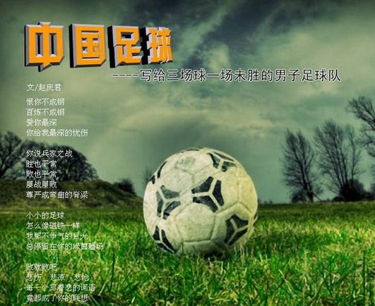 目前的中國足球極像一個(gè)天天調(diào)皮搗蛋一點(diǎn)兒不爭(zhēng)氣的孩子,可你罵他?連打他都沒有用!還得哄他!怎么辦?對(duì)中國足球真正有用的可能只有放棄幻想了。用足夠長(zhǎng)的時(shí)間去做最基礎(chǔ)的事,然后用一場(chǎng)又一場(chǎng)的勝利去改變自卑,去重新學(xué)會(huì)打真正的比賽。而這個(gè)過程要用多長(zhǎng)時(shí)間沒人知道,估計(jì)上帝也會(huì)因此而哭?墒浅说却⑷棠,我們還能做些什么嗎?