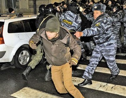 大約5000名抗議者5日在瓢潑大雨中走上莫斯科街頭,高喊“革命!”“俄羅斯不需要普京”和“為了一個不搞陰謀詭計的俄羅斯”等口號,與警方展開對峙。警方與一些示威者扭打起來,并將其包圍,防止他們向克里姆林宮前進。一些示威者試圖逃離并奔向克里姆林宮,至少有30人被大客車拉走。
