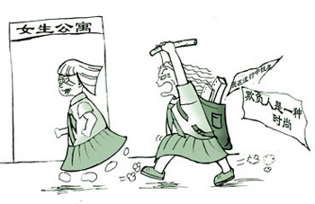透視這些學生暴力視頻就會發現,很多時候暴力的發生只因誰搶了誰的女朋友,誰看誰很不順眼……我們可以說,中學生正處于心理悸動期,受社會的影響,很容易在“從眾”、“好奇”等心理誘因下做出暴力舉動。但捫心自問,家長、學校和社會又為孩子提供怎樣的教育呢?家長望子成龍心切,卻忽視孩子的心理困擾;學校急功近利,一味追求升學率,卻不重視生命教育;社會暴力文化侵襲校園,校園不再是凈土。