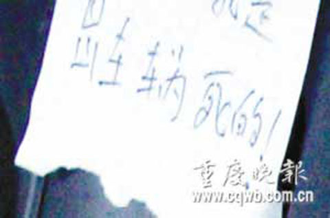 也有圍觀者認(rèn)為,紙條應(yīng)該系他人所留,“除非她可以預(yù)測自己的死因,或者是出了車禍,臨死留下這樣的遺言或者血書。但是從神秘紙條外觀看,不像是緊急狀況,胡亂涂畫的遺言,更像是經(jīng)過充分準(zhǔn)備后,寫下的誤導(dǎo)性線索!