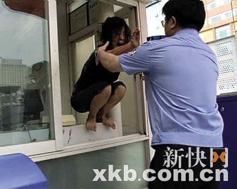 該男子將身材偏瘦小的鄭某連拉帶拖到馬路中間,揮舞菜刀想攔截過往車輛,未有司機敢停車,該男子揮刀砍了一輛的士、兩輛轎車,其中一輛北京現代前擋風玻璃被砸爛,一輛凱迪拉克轎車車頭蓋被砍7刀。見所有的車輛紛紛避開,歹徒繼續持刀拽著鄭某穿過馬路進入日出印象小區,將小區A、B區中間保安亭里的工作人員趕出,挾持女人質進入保安亭。