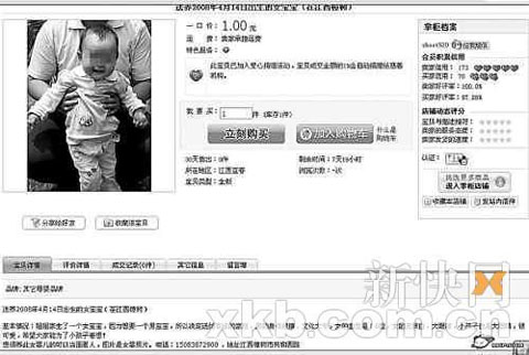 男子在網店拍賣女嬰 網友感嘆人販子也上網(圖)