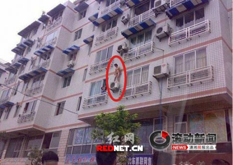 裸男站在3樓窗外空調機上 疑因偷情被撞見(圖)