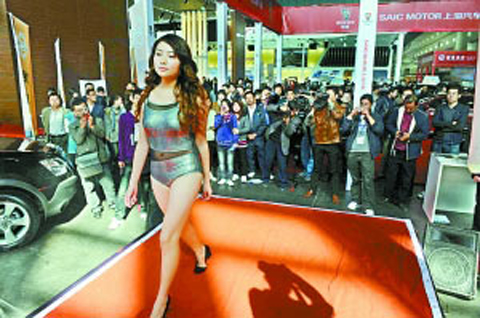 昨日上午,第二屆鄭州國(guó)際車展在鄭州國(guó)際會(huì)展中心舉行,蜂擁而至的汽車廠家,使盡渾身解數(shù),大搞宣傳,來吸引參觀市民的注意。除了靚麗的模特、震撼的音樂、狂熱的口號(hào)外,很多展位還另出奇招。位于5樓的一家汽車展位想出了這樣一個(gè)噱頭:凡是臺(tái)下觀眾,尤其是年輕的女士,穿上泳裝,上臺(tái)走秀3分鐘,即可獲得500元現(xiàn)金獎(jiǎng)勵(lì)。