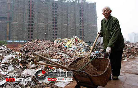 95歲老漢義務掃馬路十年如一日 每日10小時(圖)