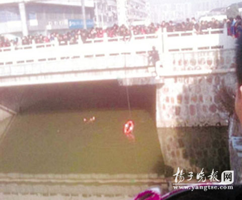 等民警趕到現場時,該女子已經順著水流,從北往南漂到了東風橋的橋洞下。正在這時,她突然一會兒大呼救命,一會兒在水中大聲嘆息,很快又從橋洞的南側漂了出來。湖塘派出所民警一邊將救生圈放入水中,一邊脫警服準備下水救人。“在警察脫衣服的時候,一個中年男子搶先一步,順著繩索爬了下去。”據目擊者介紹,該男子穿著棉毛衫褲下到了冰冷的河水里,將跳河女子拉到岸邊。“派出所民警在岸上策應,將兩個人給拉了上來。”該女子被救上岸之后,立刻上了早已等候在一旁的救護車,被緊急送往武進中醫院進行搶救。下河救人的男子在上岸之后,抱起自己的衣服便匆匆離去,無論民警如何詢問,都不愿留下自己的姓名。據了解,這名做了好事不留名的男子30多歲,身高在1.7米左右,操蘇北口音。“這么冷的天,下河去救一個素不相識的人,確實挺厲害的。”采訪中,現場的目擊者紛紛贊揚起這名男子。