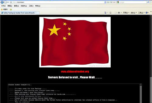 環球網記者登陸其中一個域名為 room98.ir/的網站發現,該網站首頁已被修改,上有一面中國國旗。黑客在上面用英語留言稱,之所以攻擊該網站是因為百度今天上午遭伊朗網軍侵入。 在其他一些被攻擊的伊朗網站上,還出現了粗俗語句。
