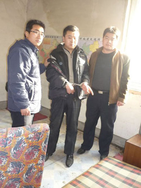 1月23日上午9時(shí)許,一夜沒有睡覺的20多名專案組民警,再次布控后,由女民警張潔以應(yīng)聘者身份,打電話和嫌疑人李強(qiáng)相約在公園東街李強(qiáng)門市面談時(shí),成功將嫌疑人李強(qiáng)抓獲。