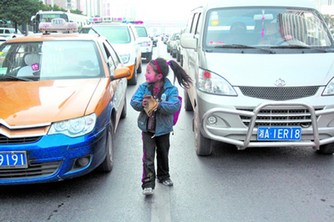 女童車流中討錢 女孩稱系父母指使輟學賺錢(圖)