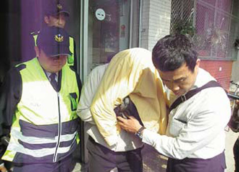 中國(guó)新聞網(wǎng)消息 臺(tái)北保警一分隊(duì)警員姜義銘(中),2日深夜涉嫌在新店客運(yùn)上猥褻夜歸女子,偵訊后今天被警方依強(qiáng)制猥褻罪嫌移送。