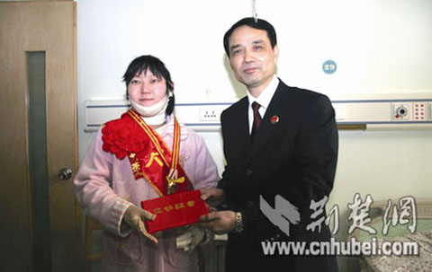 楚天金報消息 “我所付出的一切都是值得的,我有信心,仍然要站起來,回到我熱愛的檢察事業上去!”昨日上午10時許,一個特殊的授獎儀式在武漢市三醫院燒傷住院樓311病房舉行。省檢察院黨組成員、政治部主任余順生、副主任常本勇專程來到病房,為剛剛獲最高人民檢察院個人一等功的女檢察官華麗授獎——因仍在治療中,她不得不缺席了幾天前的表彰大會。婦女節來臨前夕,記者走近此次獲最高檢表彰的華麗等幾名女檢察官,記錄她們主持公平與伸張正義的故事。