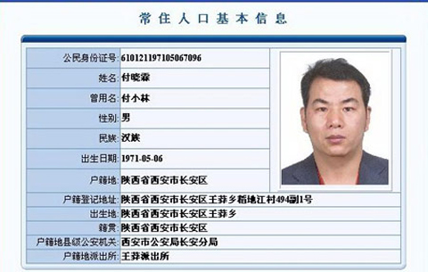 記者在10日凌晨3時蘭州市公安局召開的新聞發布會上獲悉,付曉霖,1971年5月6日出生,身份證號610121197105067096, 陜西省西安市長安縣王莽鄉江村人,身高1.70米,陜西口音,有吸毒史。