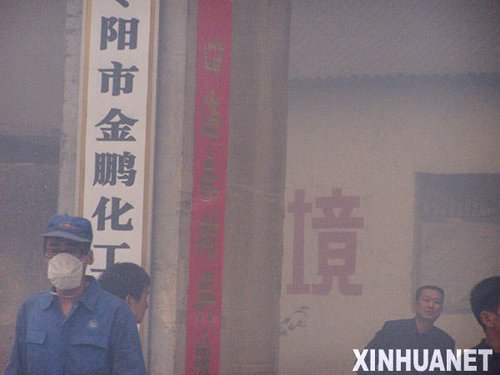 湖北棗陽一化工廠起火致化學(xué)物質(zhì)泄漏(圖)